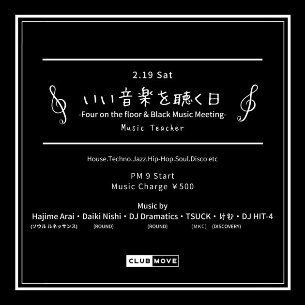 この日はMOVE界隈の様々なDJ達が週末営業のBGMを担当します。