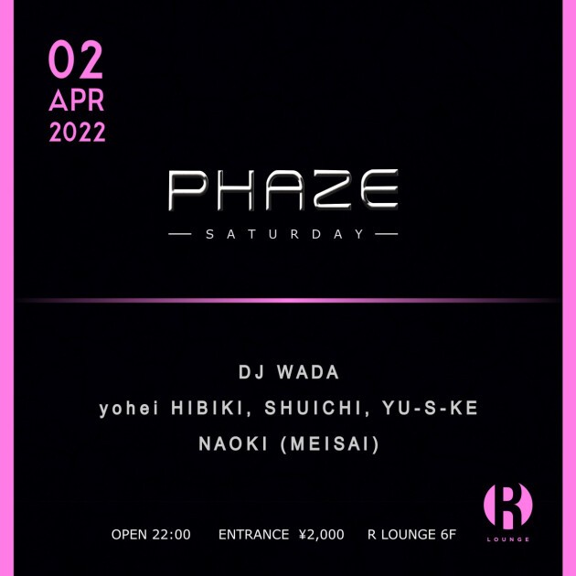 R LOUNGEにて開催されているテクノ、ハウスを中心に最新のダンスミュージックを発信するパーティ『PHAZE』