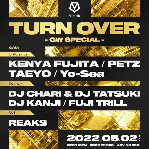 DJ CHARI、DJ KANJIの他、新たにFUJI TRILLがレジデントに加わった第1・第3土曜日開催の大人気HIPHOP PARTY『TURN OVER』がゴールデンウィークスペシャルとして開催!