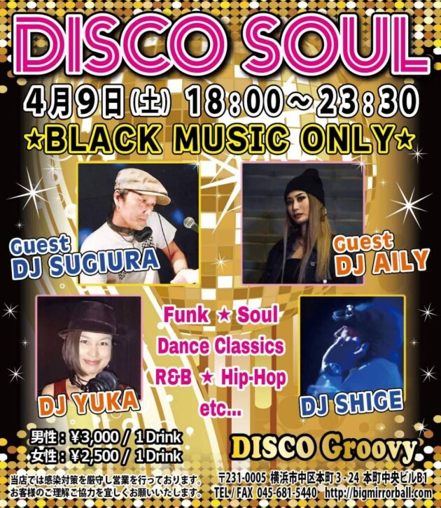 毎月第2土曜日は【DJ SHIGE&DJ YUKA】による黒音オンリーの夜に静岡よりDJ SUGIURA 、DJ AILYをゲストに迎えさらに黒くお届けします。