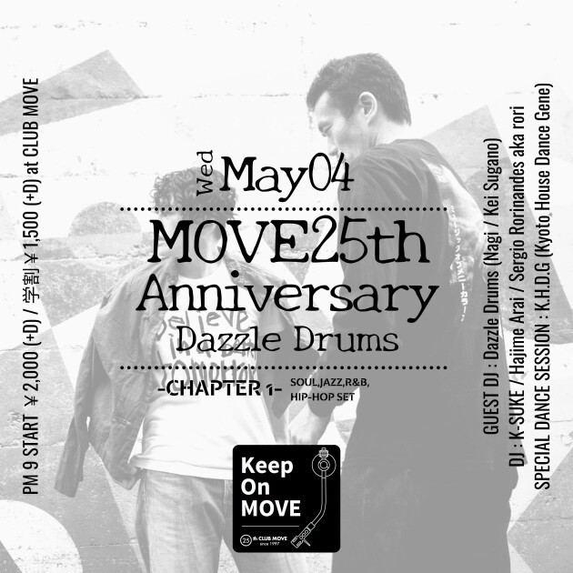 今春でCLUB MOVEは25周年を迎えます。その記念日にいくつもの物語を築いてくれた "Dazzle Drums" が来てくれます。