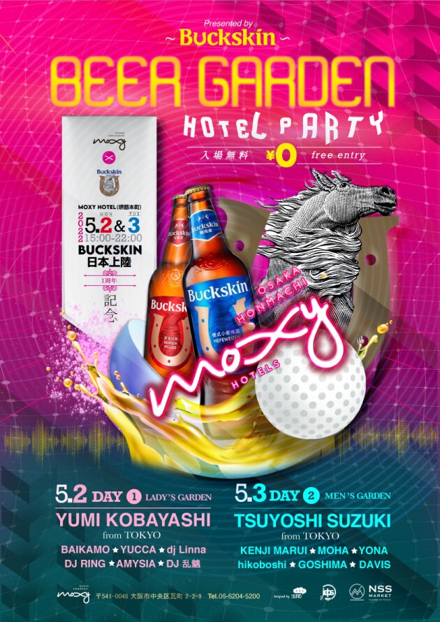 5月2日と3日の二日間は、DJ スクール IDPS 大阪校の開校6周年と、Buckskin Beer の日本上陸一周年を記念して、Moxy Osaka Honmachi / モクシー 大阪本町 を会場に、両日15時〜22時までの DAY PARTY "Beer Garden Hotel Party 2022" を開催。