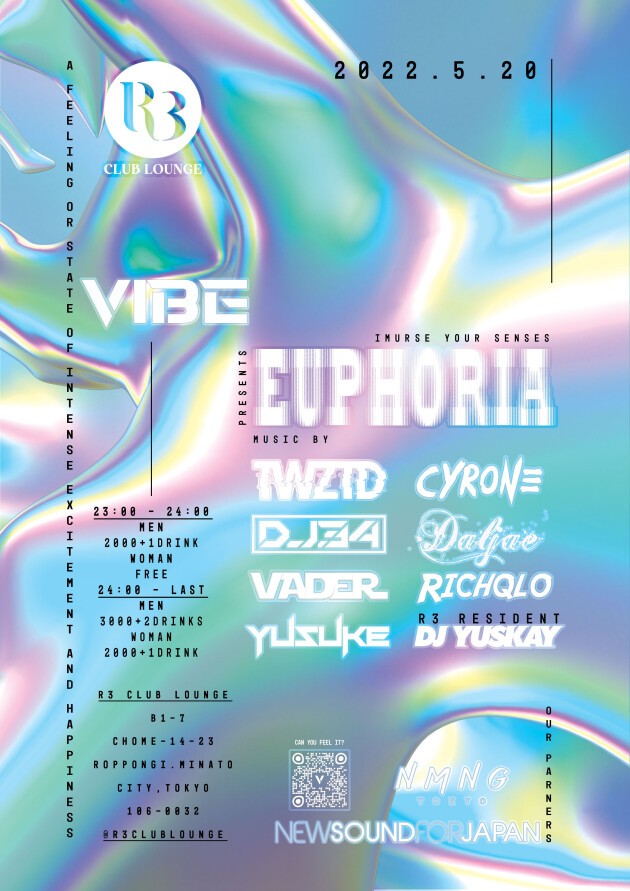 Vibe Presents: EUPHORIA The first ever House and Techno event to come to Roppongi on the weekends!
