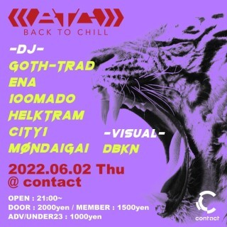 主宰GOTH-TRADがUKのダブステップ・シーンと繋がるきっかけとなった自身のタイトル「Back To Chill」を由来に、2006年に始動した同名のパーティは日本初のレギュラー・ダブステップ・パーティとして話題を呼び、国内のヘッズのみならず、海外のベース・ミュージック・ファンからも注目を集めている。今やダブステップ/ベースミュージック・パーティの最高峰かつ代名詞にもなっており、Contactでの開催もBack To Chillのサンクチュアリー・毎月第一木曜日に深夜の渋谷地下を大きく揺るがす。