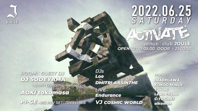 2022年6月25日のJOULEは、XXX主催テクノ&ハウスパーティー<ACTIVATE>開催!!