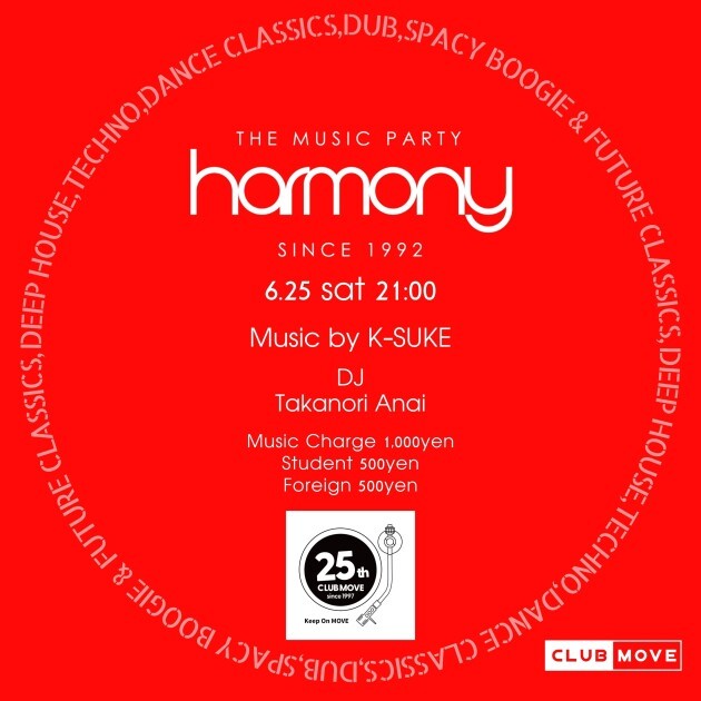 音楽を取り巻く環境の変化が著しい昨今、このHARMONYだけはいつも変わらず温かい場所であり続けたいと思います。新旧織り交ぜて、様々なジャンルをクロスオーバーさせて、刺激的なミュージックライフを今回もみなさんと楽しんでいけたら幸いです。