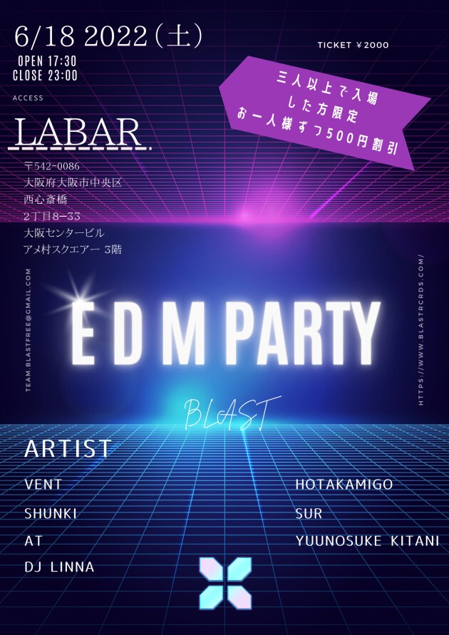 三人以上で入場された方限定、お一人に付き 500円 割引!!