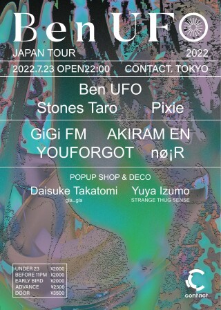 Contactの2019 – 2020のカウントダウン以来、2年半ぶりとなるBen UFO来日公演が決定。クローズまで2ヶ月を切ったContact、および全国都市圏のクラブが画策していたBen UFOの招致がジャパンツアーという形でついに成功した。