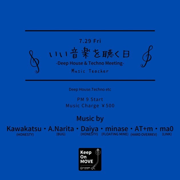 この日はMOVE界隈の様々なDJ達が週末営業の音楽を担当します。