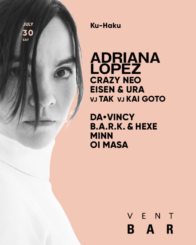Adriana Lopez, who has been getting loads of attention not only as a highly skilled DJ who places emphasis on rhythm and energy, but also as a formidable producer of dark, driving techno, will be coming to VENT BAR on July 30!