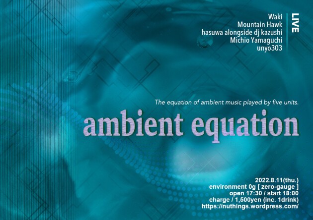 A live event of ambient music will be held on August 11, 2022 at environment 0g [zero gauge] in Osaka.