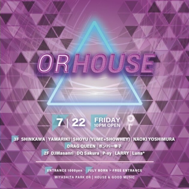 渋谷のランドマークMIYASHITA PARKにて展開するOR TOKYOにて開催されているハウスパーティ『OR HOUSE』 日本のダンスミュージックシーンを長年リードしてきたSHINKAWA、YAMARIKI、SHOYU(YUME+SHOWHEY)などが登場!