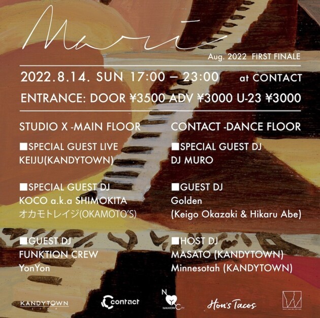 The first edition of 2022, titled “FIRST FINALE” with the closing of Contact, features a special guest live by KEIJU of KANDYTOWN, along with special guest DJs: DJ Koco a.k.a. Shimokita, Reiji Okamoto (OKAMOTO’S), FUNKTION CREW, and YonYon.