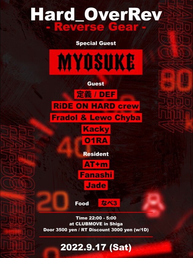 滋賀で唯一とも言えるHardcore中心のクラブイベントHard OverRev - 1st Anniversary -