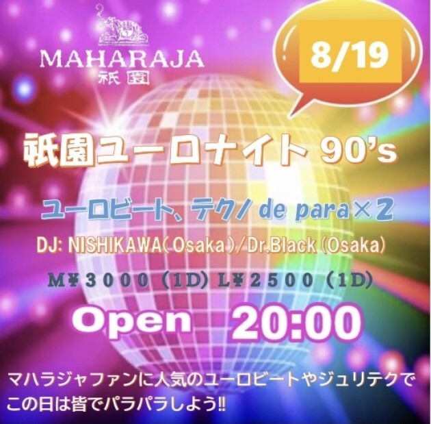 90年代ユーロビート中心にテクノも流れる日。この日だけはパラパラを思いっきり楽しもう!