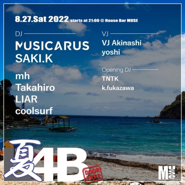 8/27(土) 21:00~ #夏4B @大阪西天満 House @bar_muse