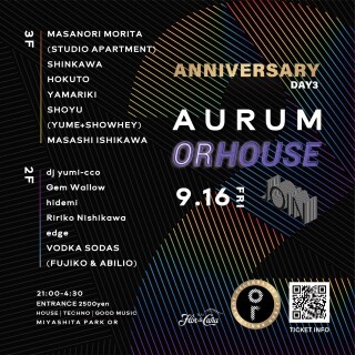 渋谷のランドマーク『MIYASHITA PARK』にて展開する複合型エンターテインメント施設 『OR 』が2周年を迎える! アニバーサリーパーティー3日目となるこの日はレギュラーハウスパーティーAURUM, JOIN, OR HOUSEか ゙スぺシャルコラボレーション! ダンスミュージックユニット”STUDIO APARTMENT”としていくつものリリース、 ヒット を飛ばし、DJとして日本及び世界各国で活動するMASANORI MORITA、日本のダンス ミュージック シーンを長年リードしてきたSHINKAWA、DJ HOKUTO、YAMARIKIらが登場!