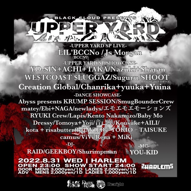 DANCE SHOWCASE: Abyss presents KRUMP SESSION, SmugBounderCrew, matey, Ebi+NAGA, newladys, エモエモエモーションズ, RYUKI Crew, Tomoya+Yoji, 音己華, Kousuke+AILI, kota+risabutterfly, JAVIER+TOKIO+TAISUKE, camus, ViVi, Rena+MiKi