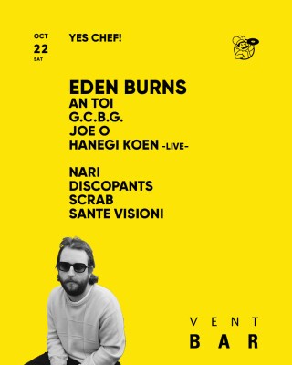 Rising star backed by Solomun and Avalon Emerson, Eden Burns, whose records have been con-tinuously flying off the shelves of record stores all over, will be coming to VENT BAR!