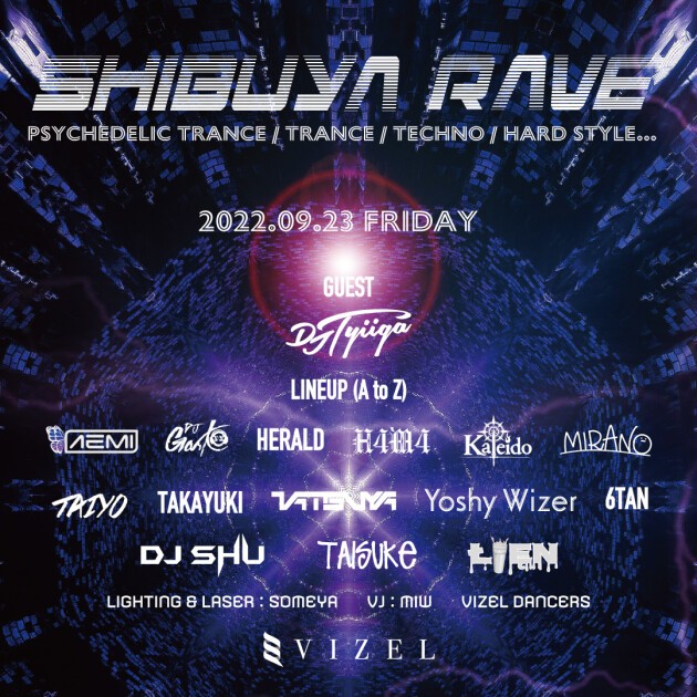 渋谷の人気 Nightclub、VIZEL にて毎週金曜に開催する看板イベント「SHIBUYA RAVE」