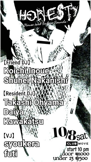 CLUB MOVEの平日ハウスパーティー「BUG」からKoichi Inoue、そして知る人ぞ知る滋賀の裏ハウスDJ、Shuhei NakanishiがFriend DJとして参加。