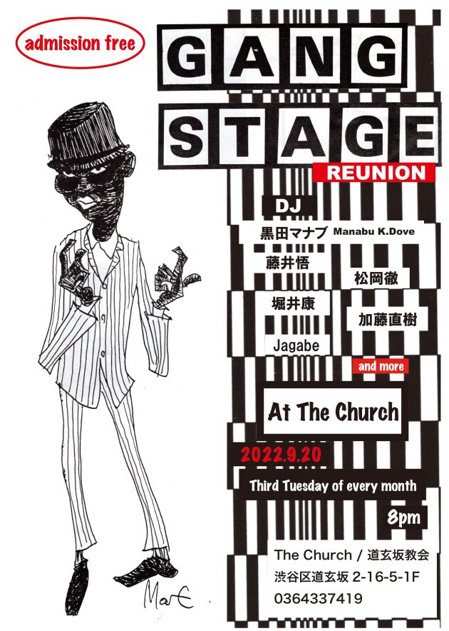 このGANG STAGEはツバキ・ハウスが閉まるまで毎月続けられ、その後Pピカソ、ミロス・ガレージ、Web、音と場所を移しながら、その時代の一番リアルなMODSを意識したクラブとして毎月オープンしていたがOrganBarで数回不定期開催した後休止。