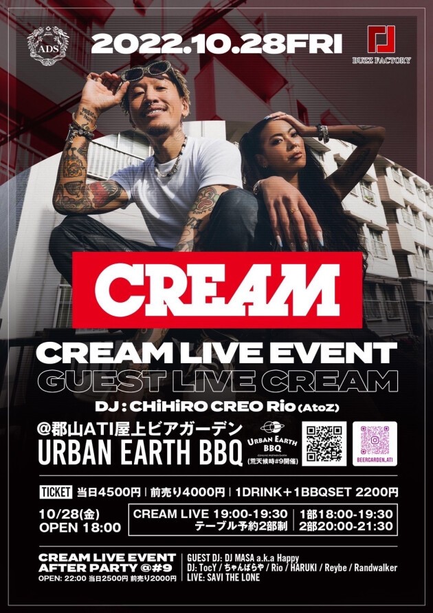CREAM LIVE EVENT@郡山ATi屋上ビアガーデン URBAN EARTH BBQ(荒天候時#9開催)