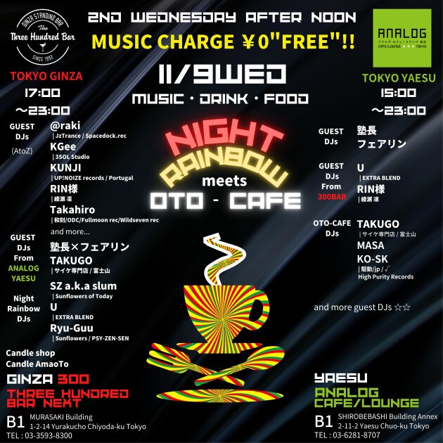 #nightrainbow #otocafe #オトカフェ #駆動 #kudo #root #highpurityrecords #psychedelictrance #サイケデリックトランス #psyche #サイケ #house #ハウス #rock #ロック #pops #歌謡曲 #club #クラブ #dj #銀座 #ginza #有楽町 #yurakucho #アナログ八重洲 #analogyaesu #300barginzanext