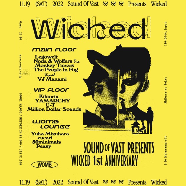 Wicked, a party hosted by Sound Of Vast, a Japanese record label from Amsterdam, celebrates its 1st anniversary. Three floors will be opened to present a lineup suitable for the festivities.