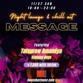 ダンスミュージック!なぜ僕は、なぜ人はダンスミュージックに心惹かれるのだろうか。 ジャス、R&B.ブルース、ロック。日本にハウスシーンが訪れたのは80年代前半といわれている。そんなダンスミュージックの歴史の中にDJとして40年以上身を置く男、天宮辰郎。 今回の企画は、あえて緩め、いつもよりBPMを落とした選曲を中心にひと晩プレイする。 カッコイイ曲、そしてその音を紡いでいく中で音楽以上の感動を生み出すDJというクリエイティブな作業。それが伝われば良いな、という 天宮辰郎とHOUSE BAR MUSEからの MESSAGE…