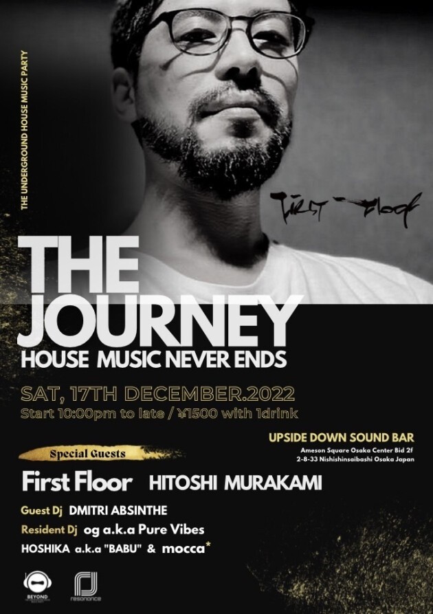 関西を代表するHouse music Partyのひとつ、The Journey。今回はヨーロッパの老舗レーベル「local Talk」で活躍する日本人アーティスト First Floorをゲストに開催。