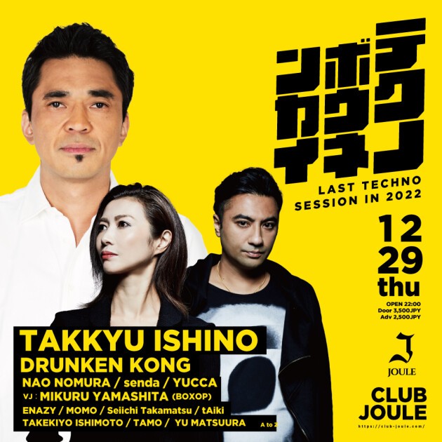 また、コロナ禍のJOULEのテクノコンテンツを支えたNAO NOMURAをはじめとする大阪テクノDJも大集結!