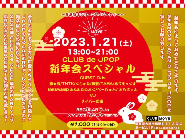 2022年 CLUB de J-POP 最初のPARTYです。新年にふさわしい豪華なGUESTをお迎えし送り致します!!