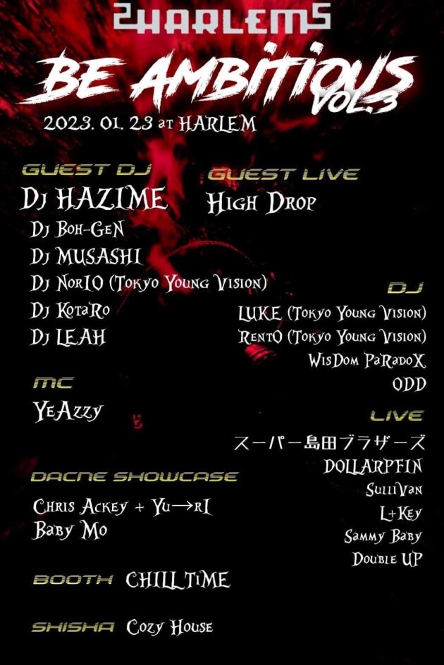 GUEST DJ: HAZIME, BOHGEN, MUSASHI, NORIO (TOKYO YOUNG VISION), KOTARO, LEAH