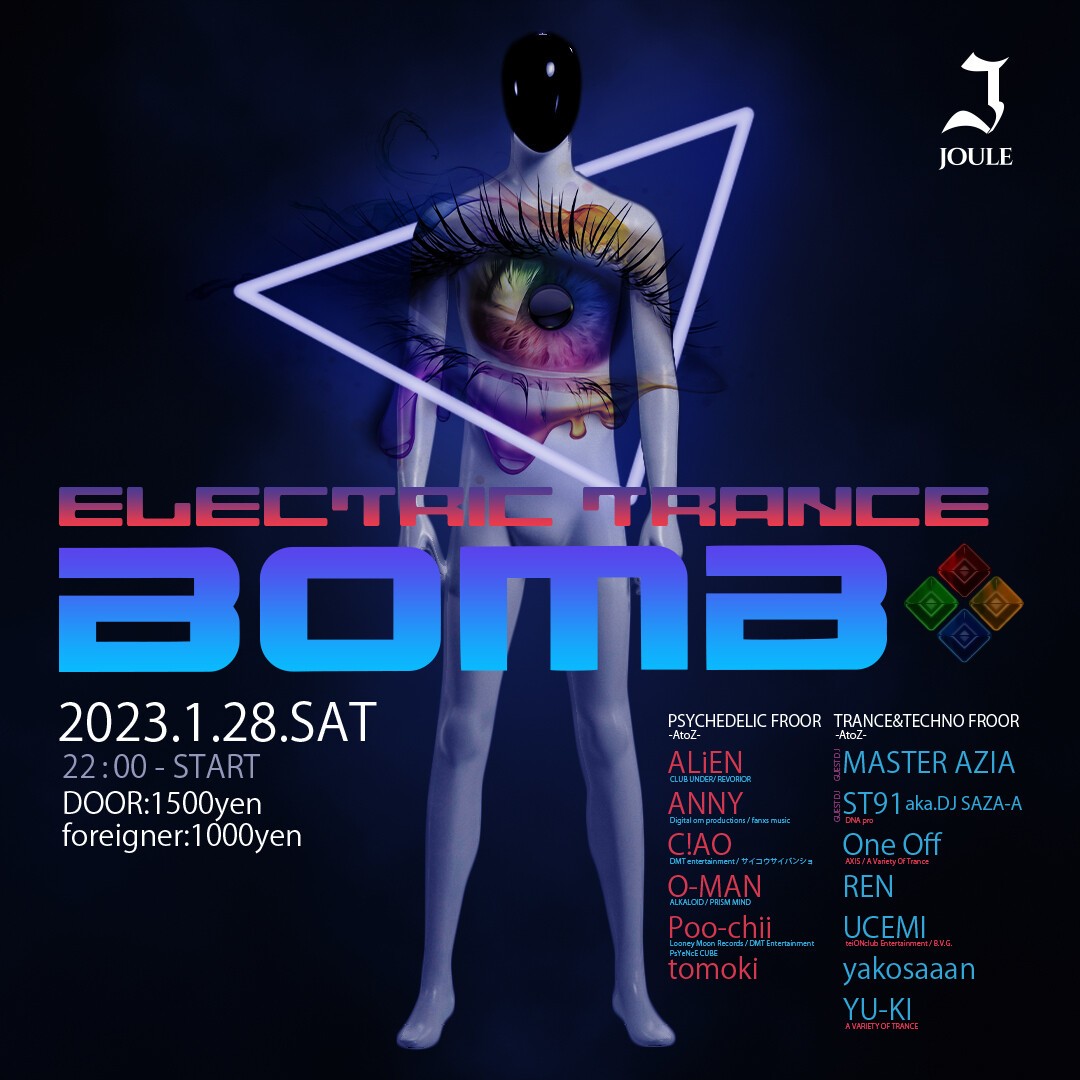 O-MAN organized the regular PSY-TRANCE party in the heyday of JOULE, where admission was restricted every month, and "ELECTRIC TRANCE BOMB" was held.