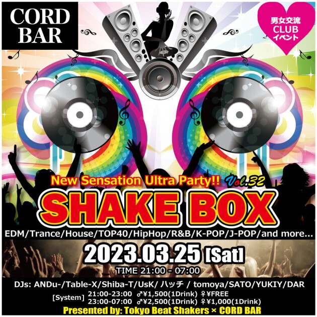 EDMを主体に、クラブ初心者にも馴染みのあるJ-POPから定番のHipHop/R&Bはもちろんの事、最新EDMまで極上の音を楽しめる新感覚のパーティー♪♪