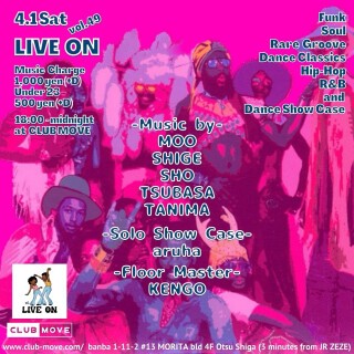 ~LIVE ON~はファンクを中心にソウルやダンスクラシックスなどの70年、80年代のブラックミュージックを愛するメンバー達が集結。