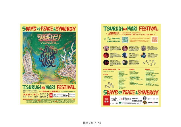 The flyer design was done by Jiyu-ku, and there is a free market with a 500 yen stall fee. Performers and staff members can stay for free. The festival is sponsored by Himawari Onsen, Kyowa Construction, Agrisystem Corporation, Tanaka Industries, Okina Heat Insulation, Haruhi no Miya, FULLMOON, Lion's House, 8eighty8eight8, and Matsunaga Sake Store