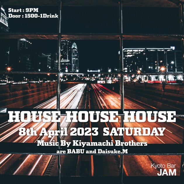 函館、札幌と北海道ツアーを終えたばかりの"KIYAMACHI BROTHERS" ホームグラウンド”Kyoto Bar JAMにて3ヶ月ぶりの開催です! ハウスフリークでなくとも十分に楽しめるこのPARTY、見逃さないで!