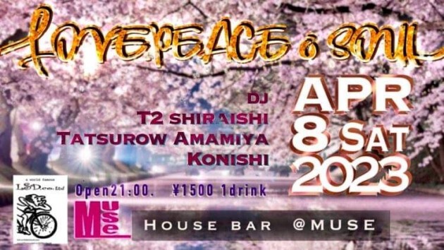 HOUSE BAR MUSEの第2土曜日に開催されるLOUE.PEACE&SOUL 本気でDJ上手いオジさん3人がHOUSEやっちゃうスゲ〜パーティーなのです。イヤほんと。 天宮龍郎(ECSTASY BOYS)率いるラブピーは長いDJ人生で培った技術、経験、そしてセンス、思わず、マイッタ!と言ってしまうパーティーです。 是非とも多くの人に体験してほしい。...