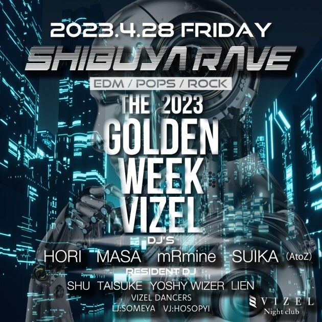 GW注目のナイトスポット!渋谷VIZELの毎週金曜は大人気パーティ SHIBUYA RAVE !!