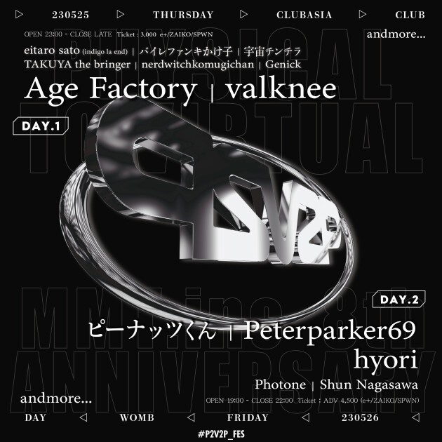 “Physical ↔︎ Virtual”をコンセプトに次世代型音楽フェスティバル『P2V2P FESTIVAL』が2023年5月25日clubasiaと26日WOMBの2日間で開催決定。