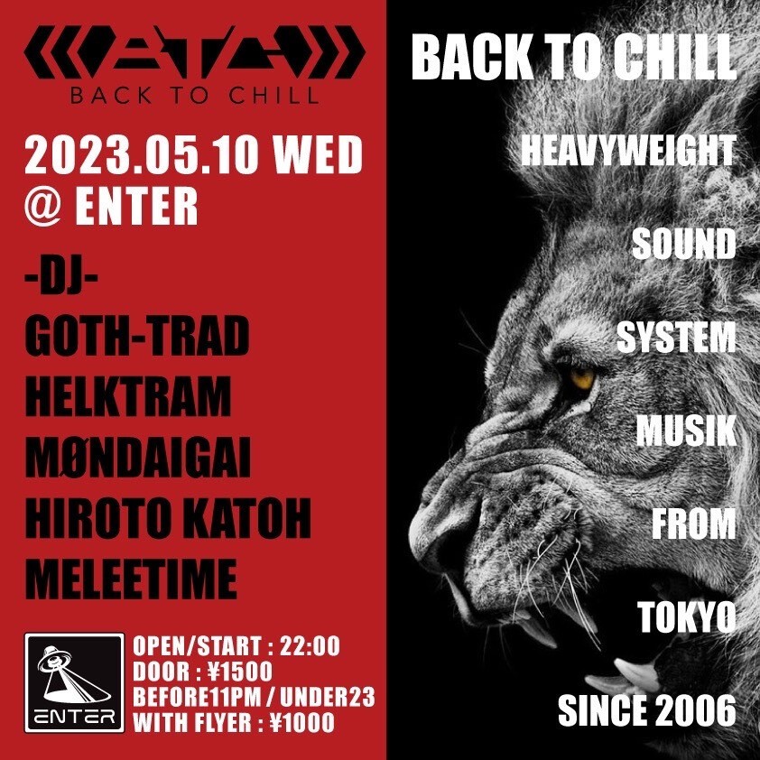 GOTH-TRAD’s party「Back To Chill」, founded in 2006, was Japan’s first regular Dubstep party that led to his connection with the UK Dubstep scene. Not only building a reputation among the heads in Japan, it has gained recognition with Bass Music fans from around the world.