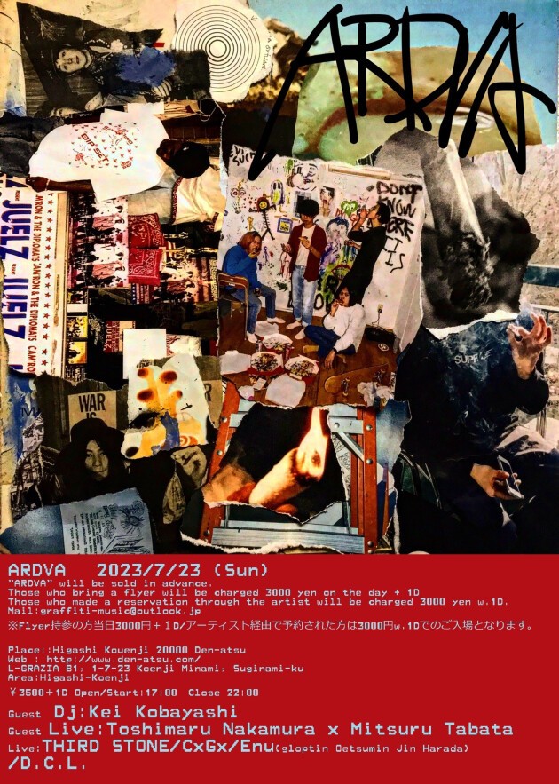 ¥3500+1D Open/Start:17:00 Close 22:00 Guest Dj:Kei Kobayashi Guest Live:Toshimaru Nakamura × Mitsuru Tabata /THIRD STONE/CxGx/Enu/D.C.L.