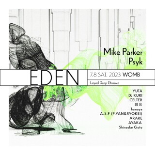 The day finally comes, we will feature Mike Parker, the dope sound master from the U.S. Psyk, an artist praised as the world top of driving/trancy techno from Non Series in Spain. And YUTA will be plying on the main stage at WOMB for the first time.