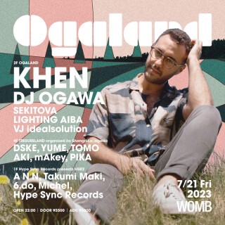 On the 2nd floor OGALAND, we welcome the young prodigy KHEN as our guest, who started mixing records with a cassette deck at the age of 6 and made his club DJ debut at 15. In Israel, which continues to produce numerous stars such as Guy Gerber, Guy J, Shlomi Aber, and Guy Manzur, he is considered a next-generation big shot. His unique groove fuses progressive house with minimal techno, creating an emotional and captivating sound. He has performed many times with DJ OGAWA, proving their strong bond. In addition, SEKITOVA, who skillfully handles everything from leftfield to techno-house, and DJ OGAWA celebrating his birthday, will showcase a special set. Combined with visuals and light by LIGHTING SAITO, they invite you to the blissful floor of midsummer WOMB.