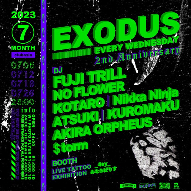 FUJI TRILLをはじめ多方面に活躍するDJ,BeatMakerが毎週水曜渋谷の夜をにぎわす通称" #エクソ "。LIVE TATTOO、PAINTも隔週でcheck。外国からのお客様は入場フリー!!是非お越しください!!