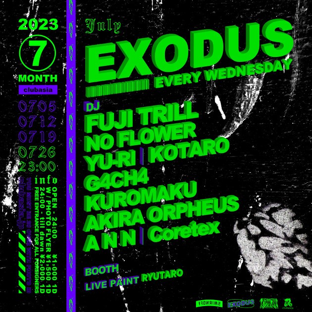 FUJI TRILLをはじめ多方面に活躍するDJ,BeatMakerが毎週水曜渋谷の夜をにぎわす通称" #エクソ "。LIVE TATTOO、PAINTも隔週でcheck。外国からのお客様は入場フリー!!是非お越しください!!