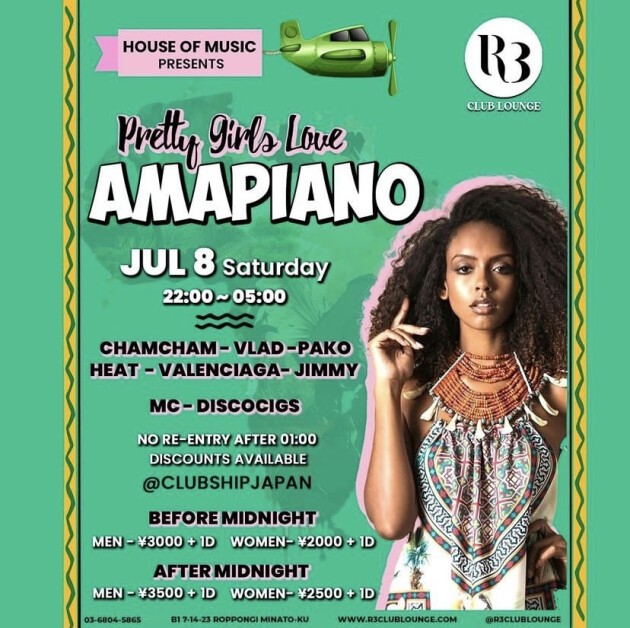 毎回大好評のハウスオブミュージックの代表パーティ、PRETTY GIRLS LOVE AMAPIANOがまたR3にやってきます アマピアノ、アフロハウス、アフロビーツ、ディープハウスなどでフロアをホットにします お待ちしてます