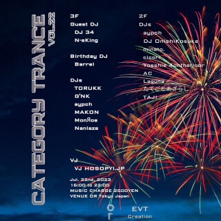 前回に引き続き、新規のDJも加わり、より規模拡大したCategory Tranceにご期待下さい!